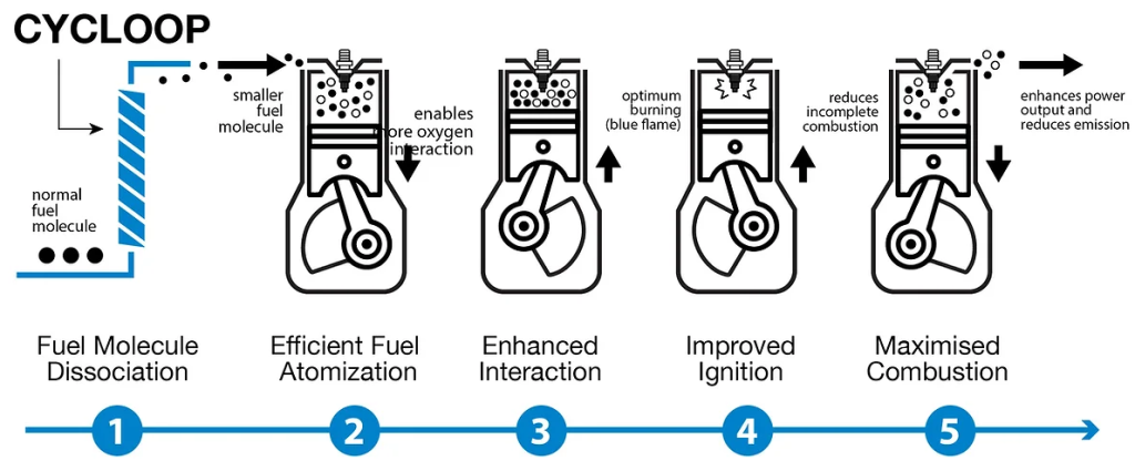 Through the process of molecule dissociation, big fuel molecules are split into smaller molecules to create optimum air-fuel mixture for the perfect burning. The result? Maximum combustion.